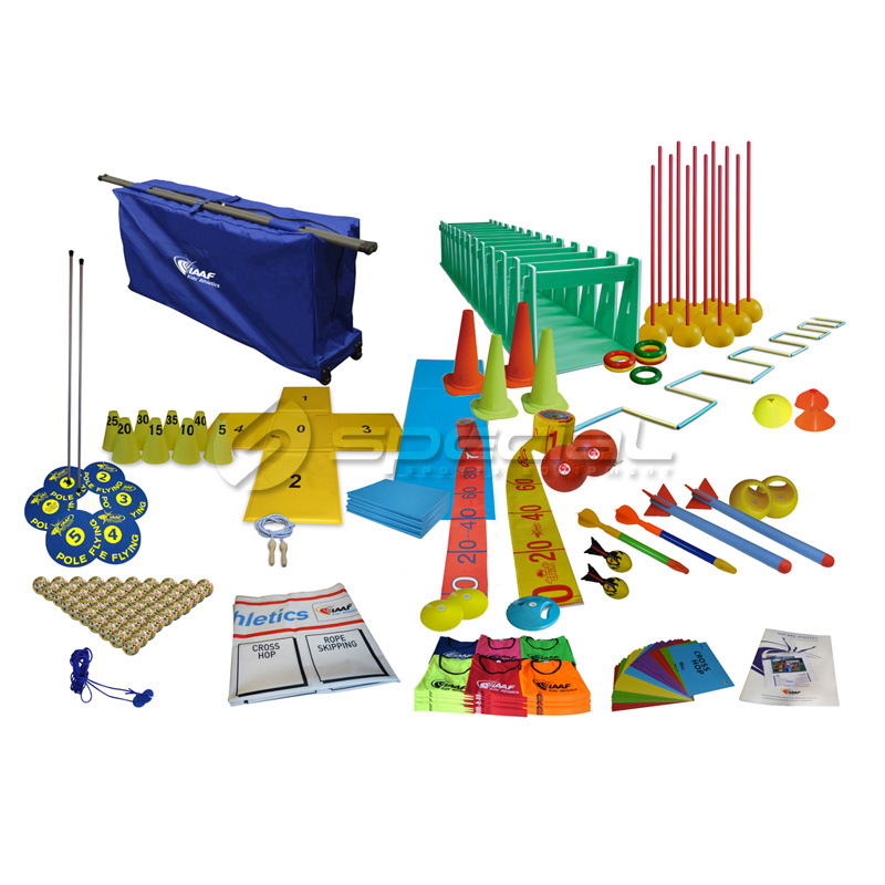 Garnitura rekvizita za atletiku za djecu, IAAF (IAAF KIDS’ SCHOOL ATHLETICS) sastavljen od 25 vrste artikala sveukupno 259 proizvoda + 1 tabla vježbi + uputstva za vježbanje + 1 CD sa vježbama + 1 torba na kotačima za transport