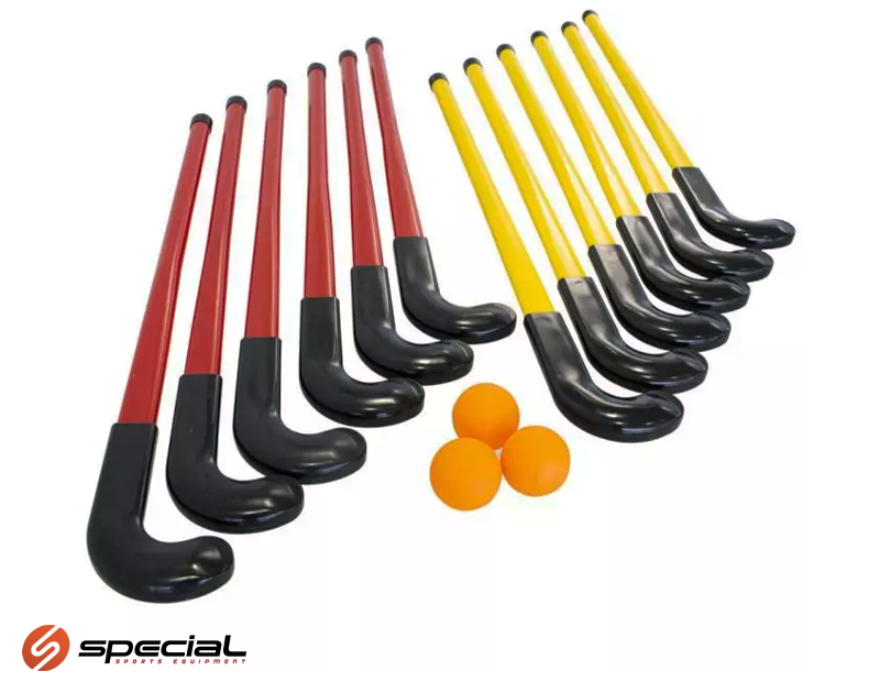 Garnitura palica za hokej (6 žutih štapova + 6 crvenih štapova + 3 loptice bez odskoka)