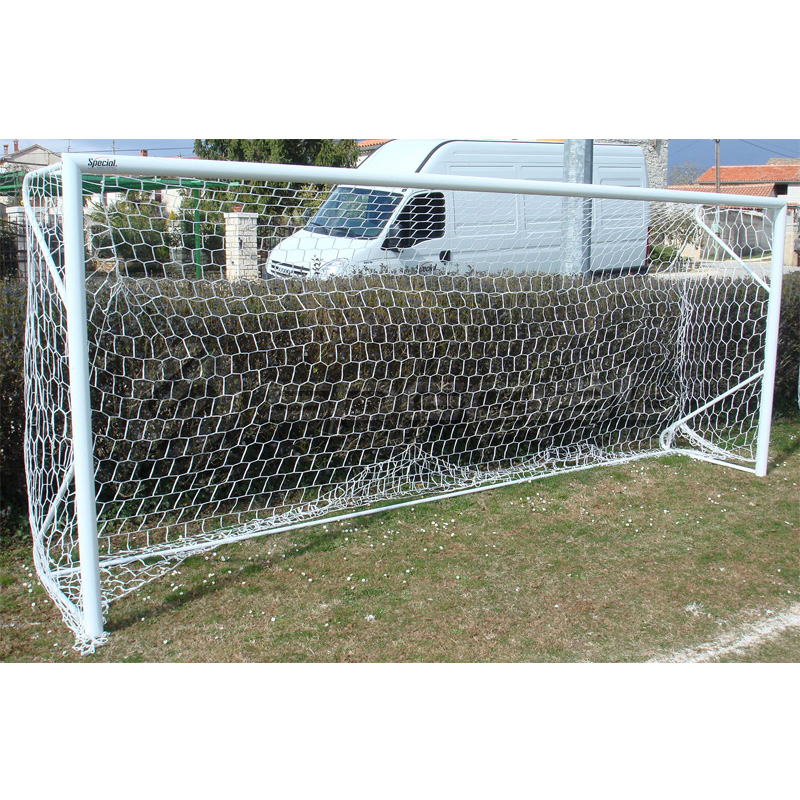 Nogometni gol, aluminijski, dimenzija 500x200 cm, prijenosni, greda iz dva dijela, okrugli profil 80 mm, podni nosač mreže metalni