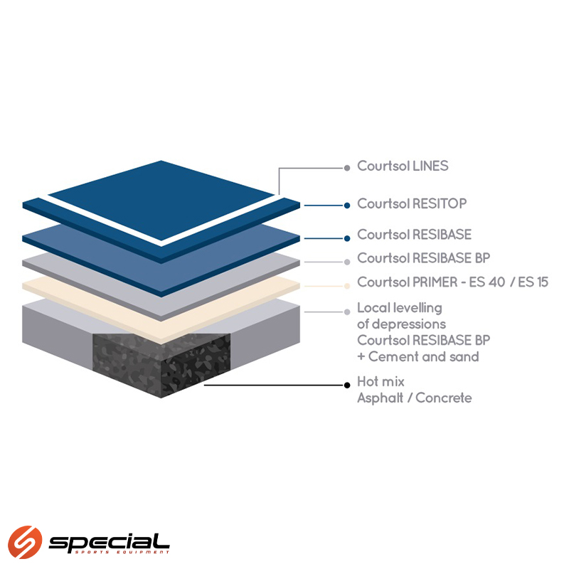 Sportska akrilna podloga Courtsol STANDING, sustav od tri sloja za nove ili postojeće asfaltne i betonske podloge, igrališta ili slične površine. STANDING sustav razlikuje se od tradicionalnih premaza zahvaljujući visokoj kvaliteti njenog izravnavajućeg sloja i gornjih slojeva. Ovaj sustav je učinkovit u obnavljanju vremenskih i erodiranih područja u glatku, obnovljenu površinu za igru. Fleksibilnost i otpornost na trošenje sustava STANDING čine ga savršeno pogodnim za sportske klubove s intenzivnom uporabom.